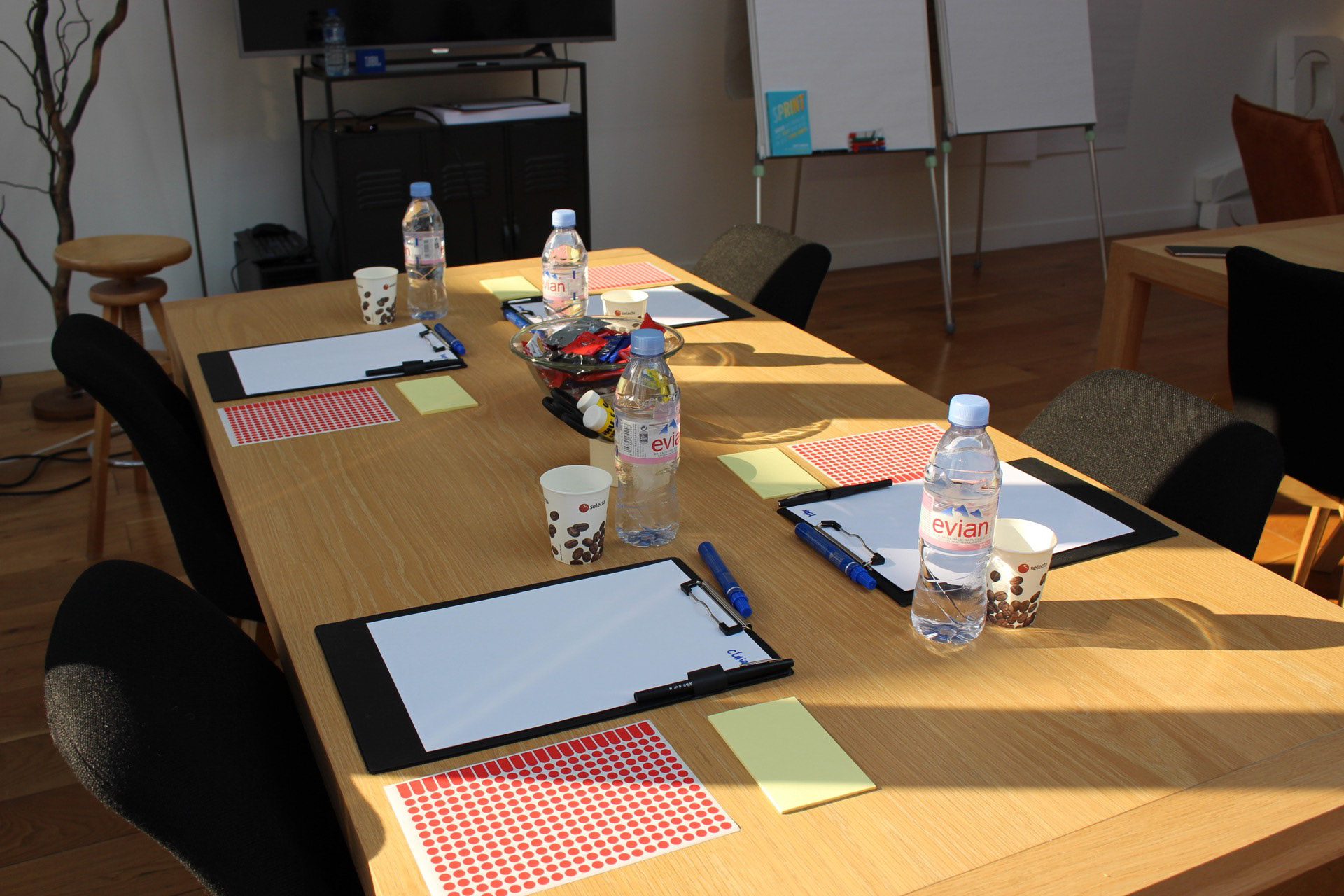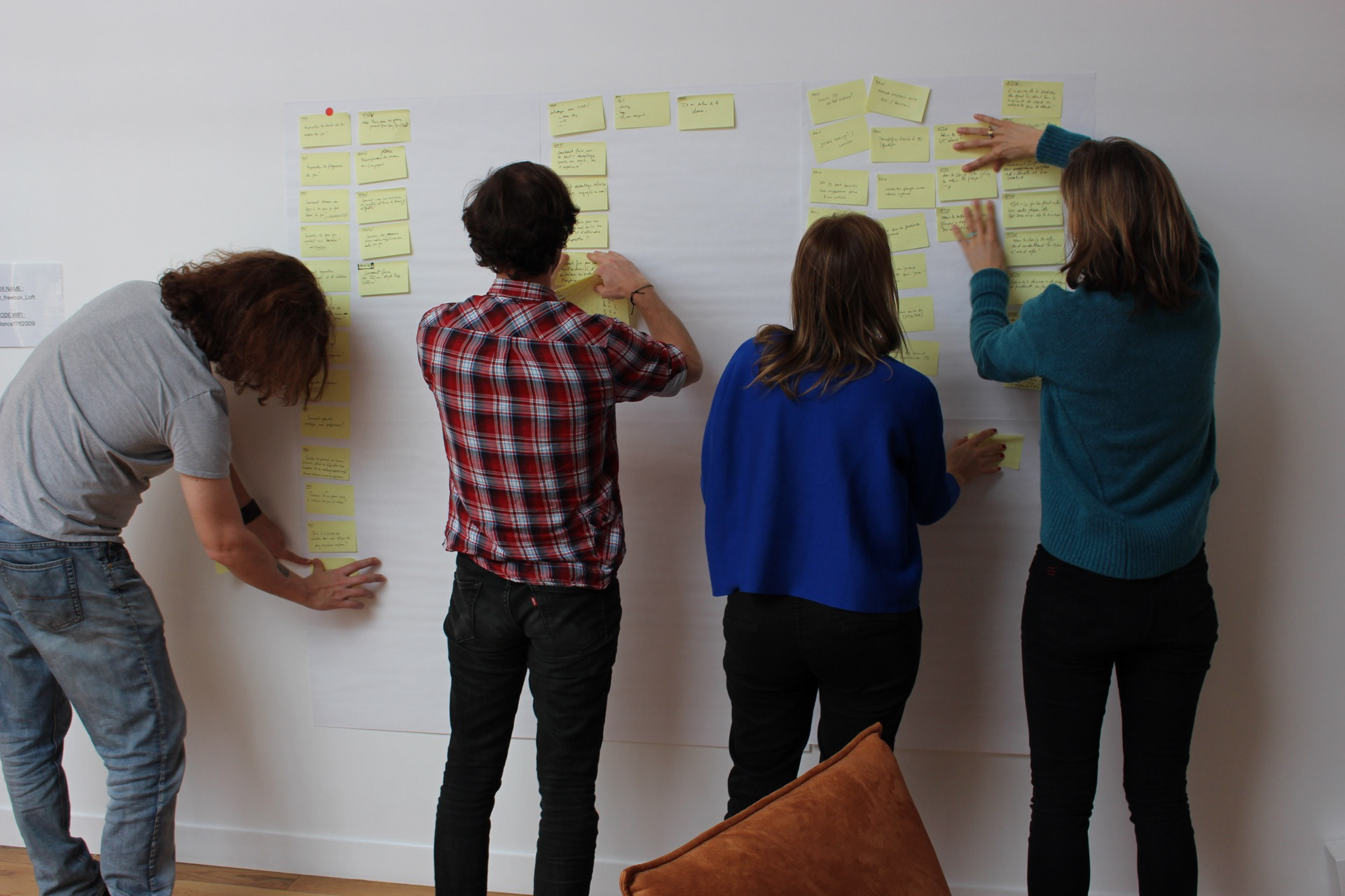 The Core Team (Creative, Game, Marketing Directors, Customer Knowledge manager and The Executive producer) watching the solutions sketches...