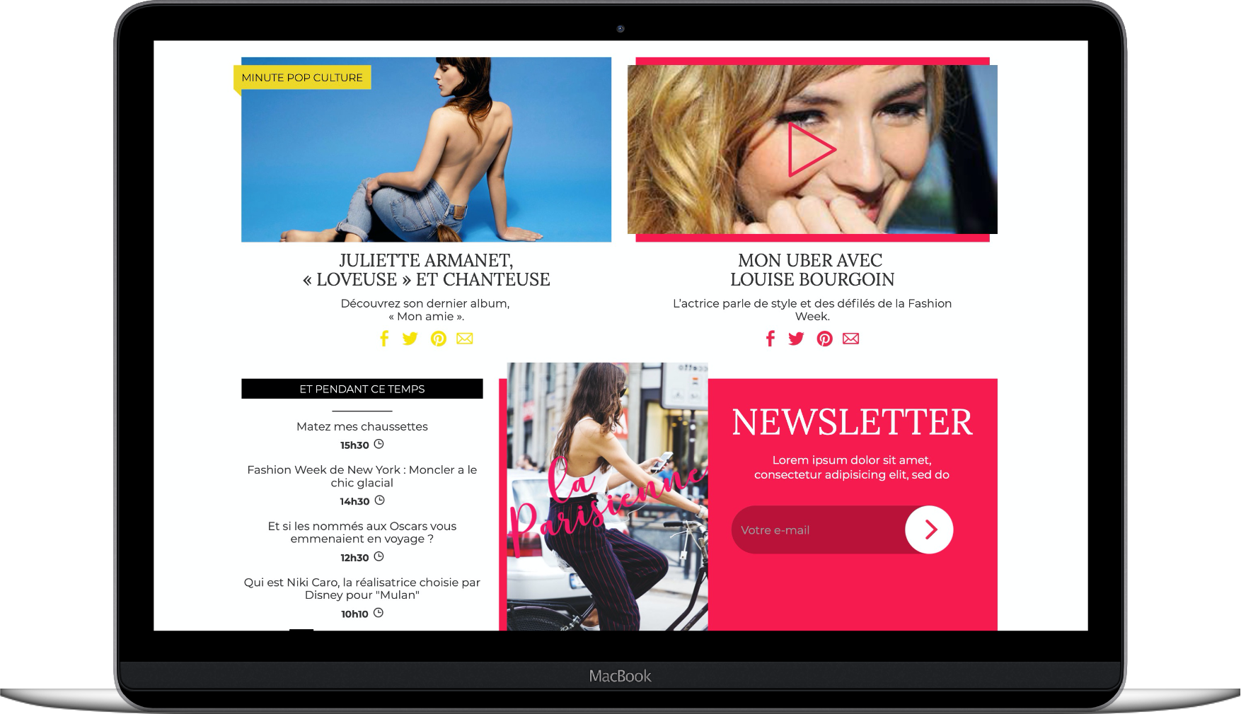 Objectives : Responsive design Desktop and mobile for the MVP of the feminine's channel of le Parisien. Donne in webflow to create and demo a full interactive prototype.